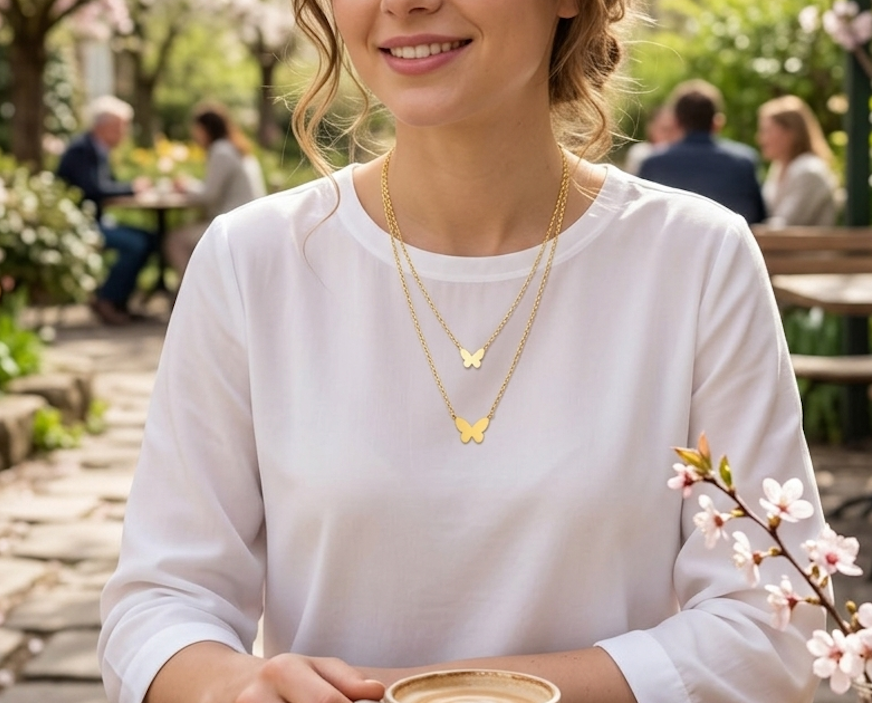 Let your beauty fly free with a touch of delicacy and shine, let your lightness show—wear a necklace that symbolizes freedom and transformation.