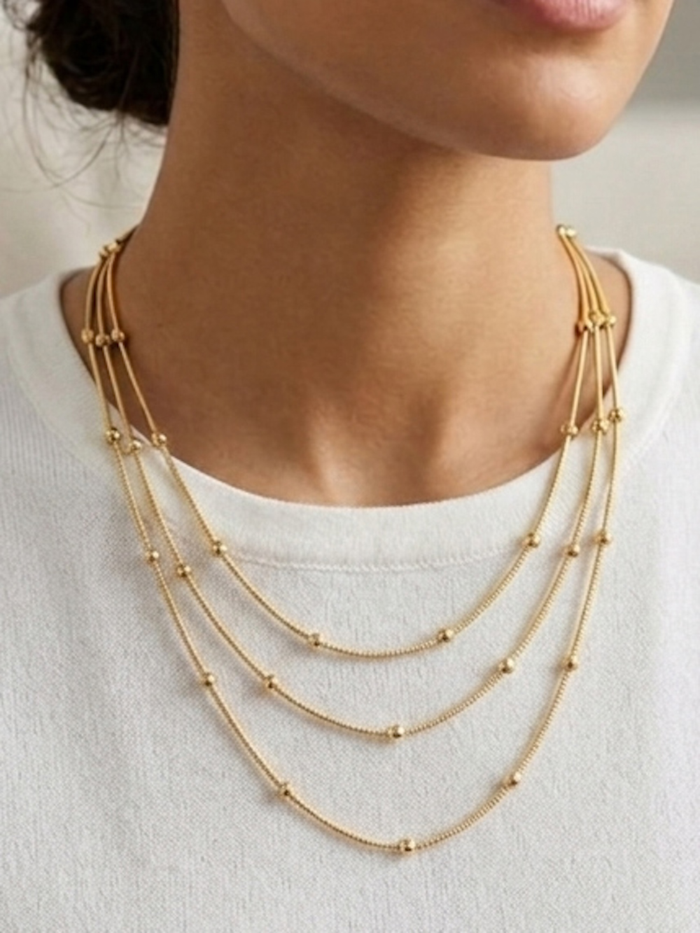 Like drops of light on the skin, this necklace turns the simple into something extraordinary.
