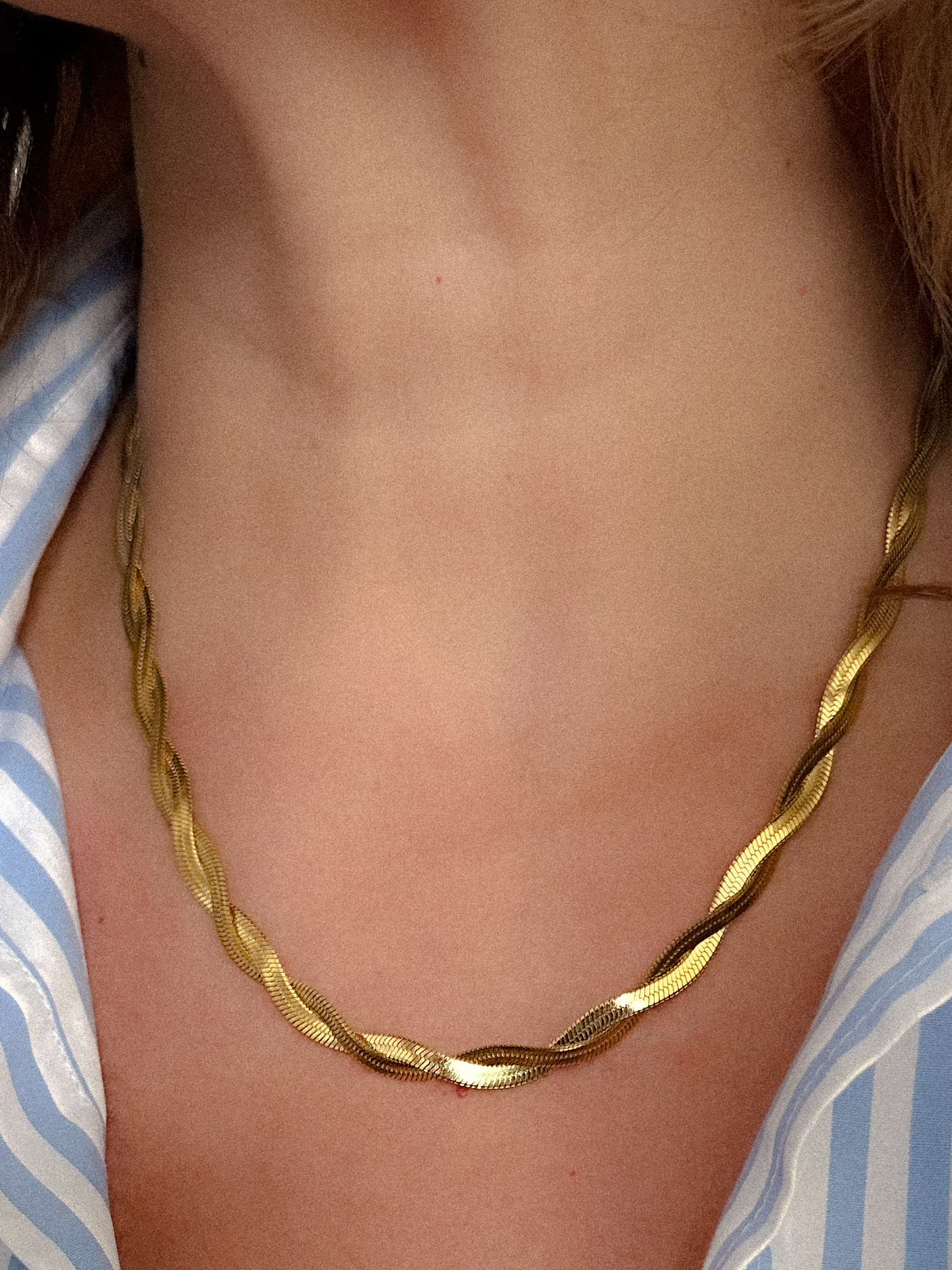 The Luminous Interlace necklace, light that symbolizes unity, balance, and sophistication, a necklace made to accompany you—from everyday moments to the most special ones.